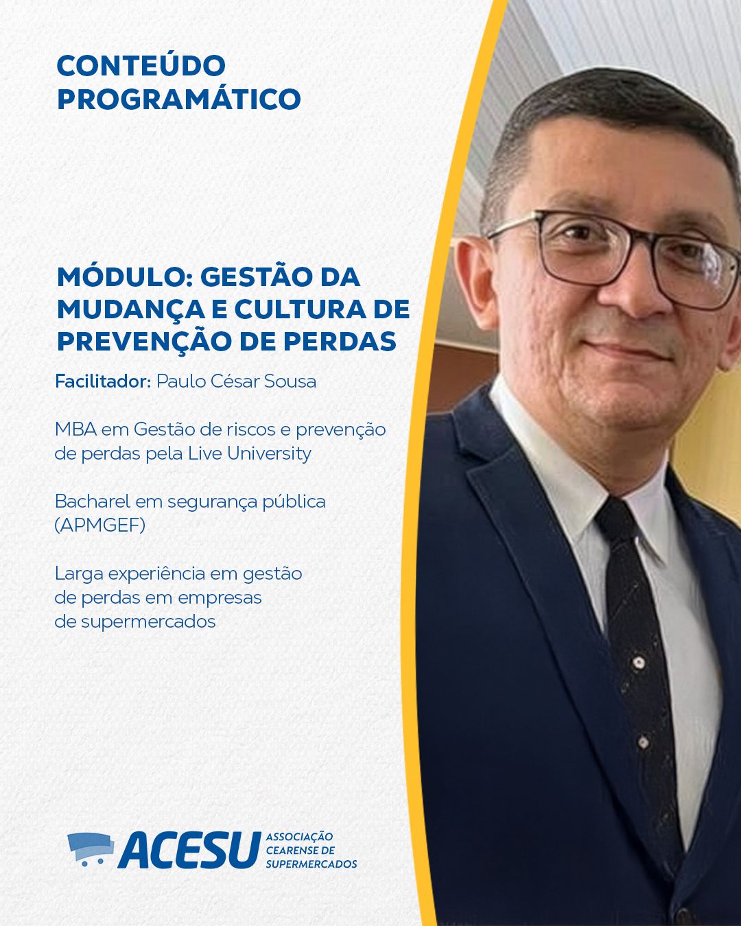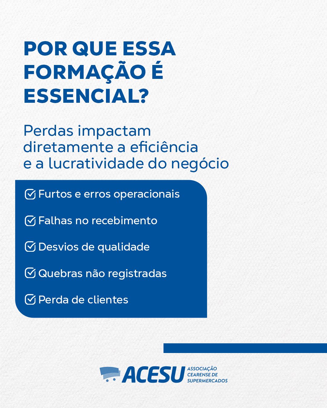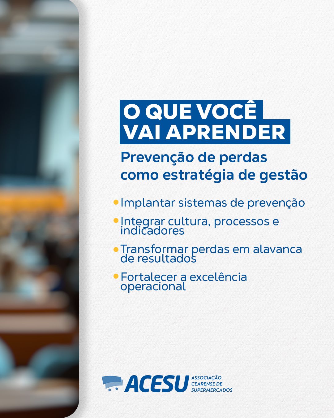 Capacitar gestores e líderes de supermercados a implantar e gerenciar um sistema proativo de prevenção de perdas visíveis e invisíveis tais como furtos, erros de digitação, falhas no recebimento, desvios de qualidade e quebras não registradas, perdas de clientes. A formação equipará os participantes com metodologias para alinhar cultura, controles operacionais e análise de dados, transformando a prevenção de perdas em uma alavanca estratégica para a excelência operacional, eficiência no varejo e maximização da lucratividade, desta forma, promovendo uma compreensão geral sobre as perdas ampliadas e gestão de resultados.